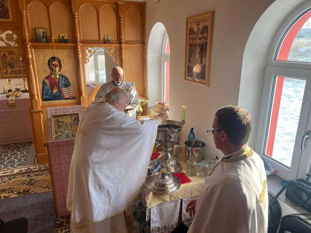 Uprostřed chrámu vladyka v modlitbě vzpomenul na svaté apoštoly, kteří: „nám v Duchu Svatém předali řád křtu čili rození synů Božích, ustanovili budování chrámů a službu oběti oltářní; kněžím uložili kánony a zákony, které i my hříšní dodržujeme, a tobě, Bohu věčnému se klaníme a prosíme tebe, milostivý Pane. Naplň slávou svou a blahodatí tento chrám, který byl zbudován k chválení tebe, a jeho oltář ukaž jako svou velesvatyni. Abychom i my, kteří před svatým prestolem této velesvatyně stojíme, jako před hrozivým trůnem tvého království, mohli s bázní a bez pohanění zde sloužiti tobě a vznášet modlitby za nás a veškerý lid tvůj.“